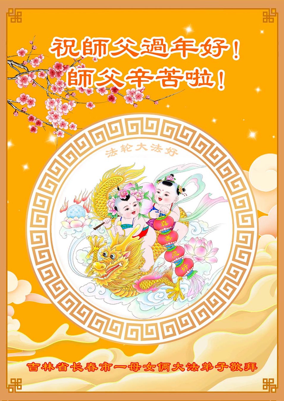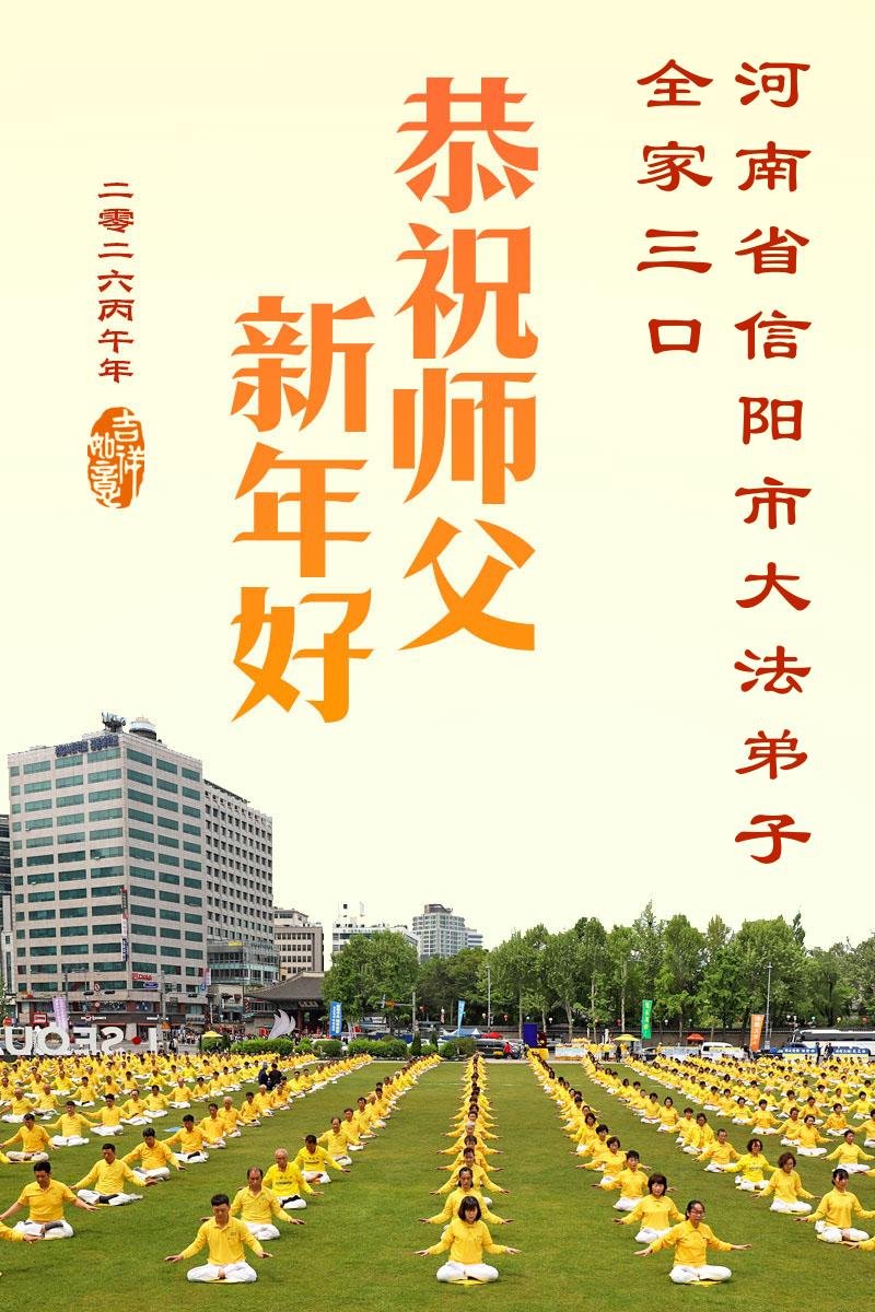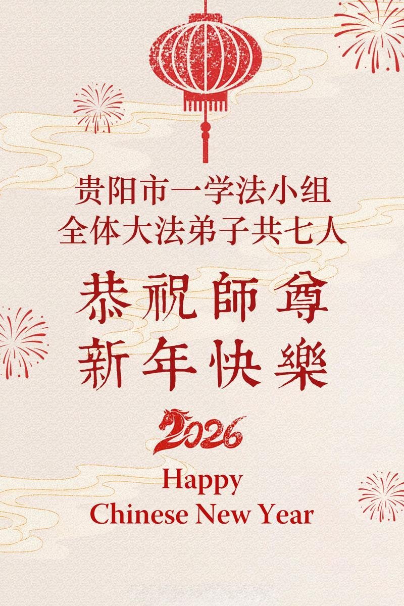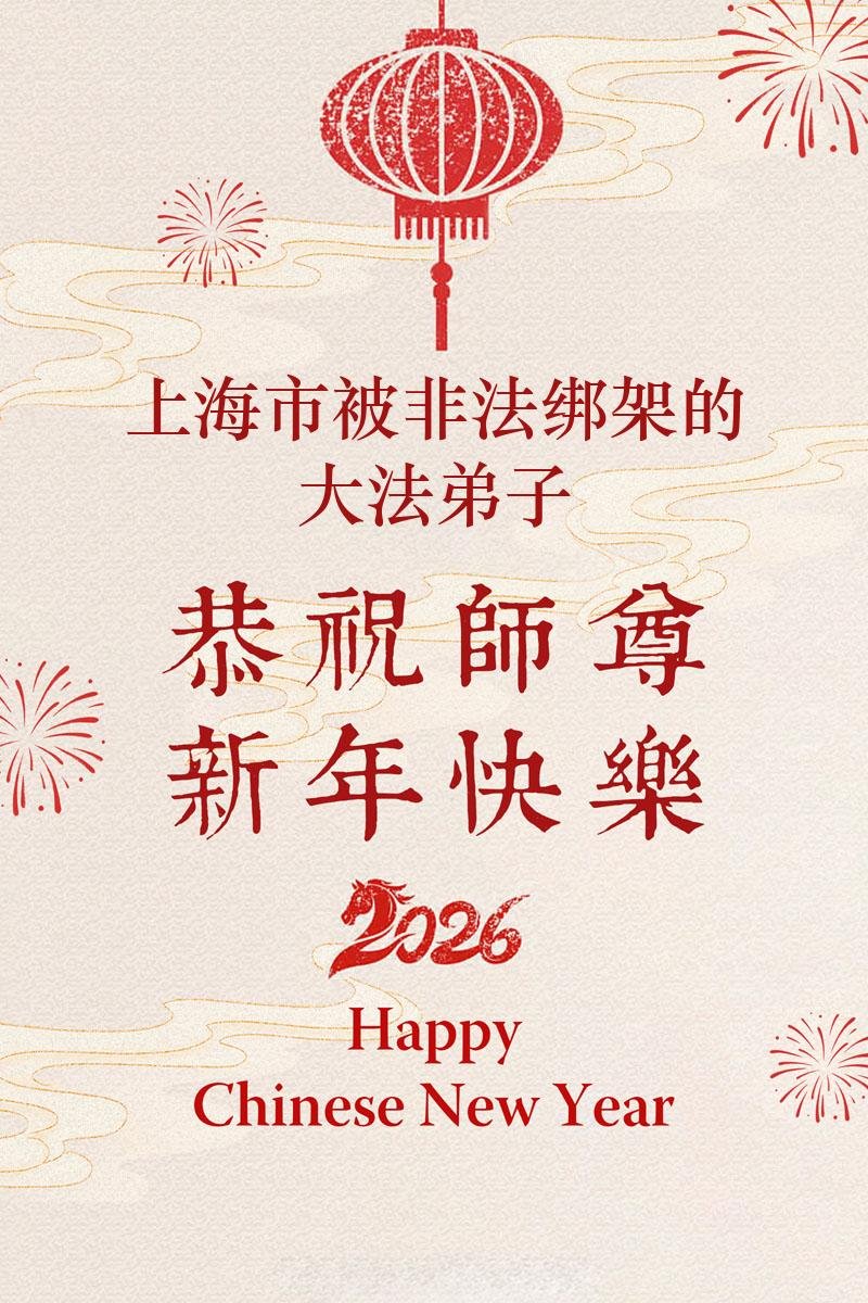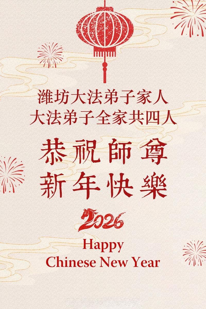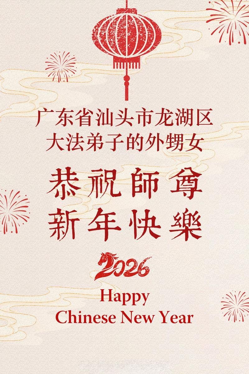 尊敬的李大师您好,您辛苦啦!在新年到来之际,我们一家给李大师拜个早年,祝李大师新年快乐!谢谢您的慈悲救度!