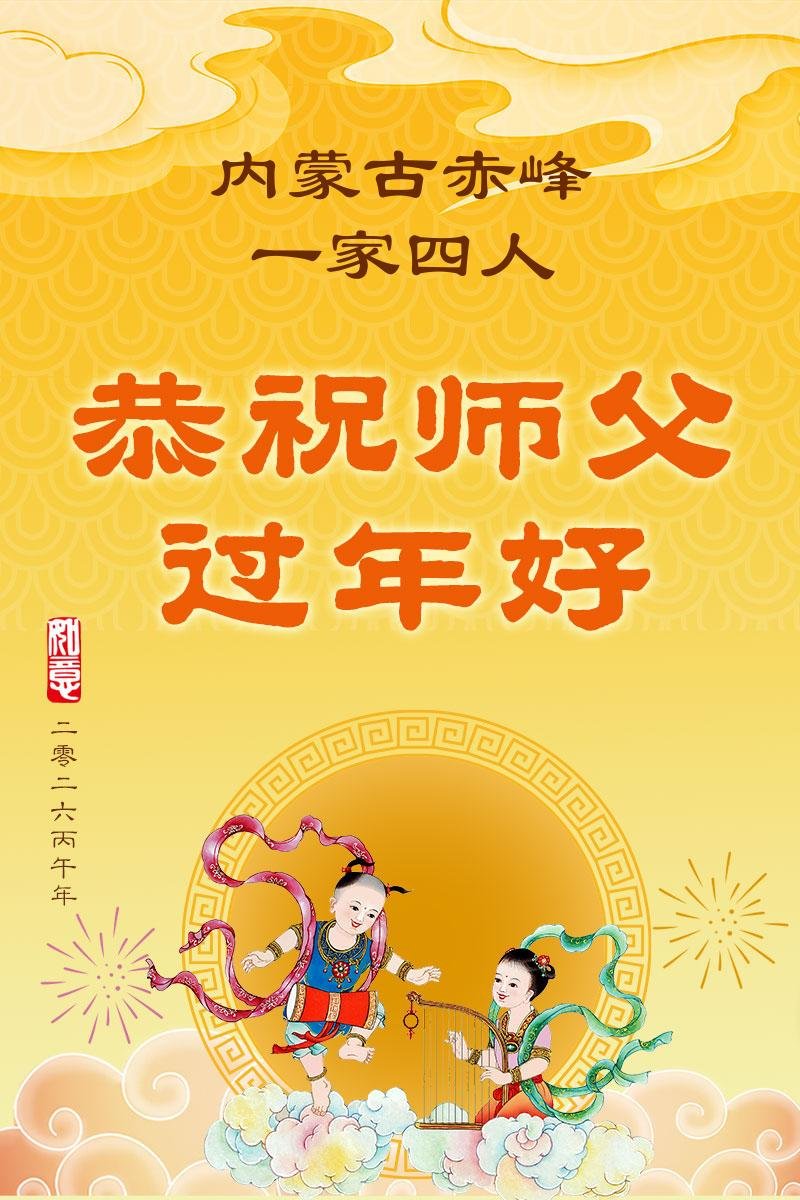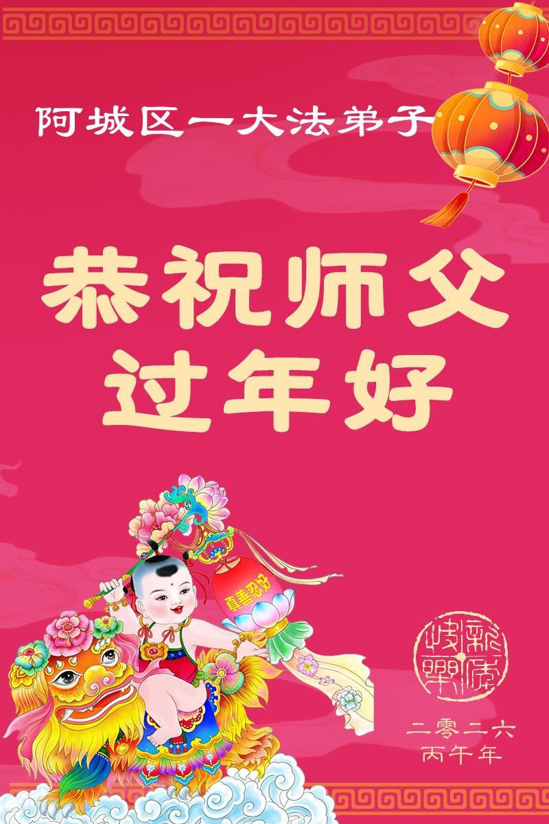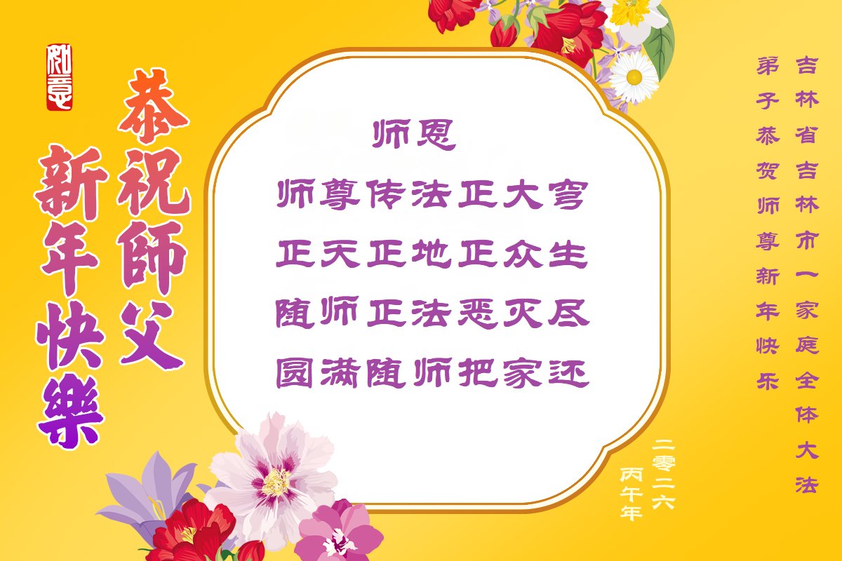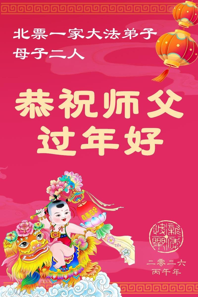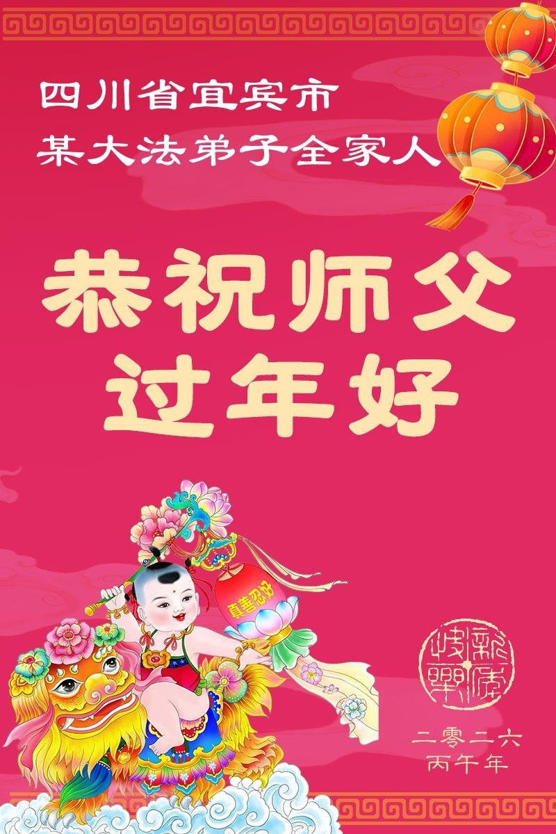 快过年了,我们全家给师父拜年,恭祝大法师父过年好!