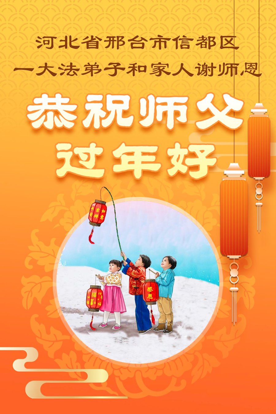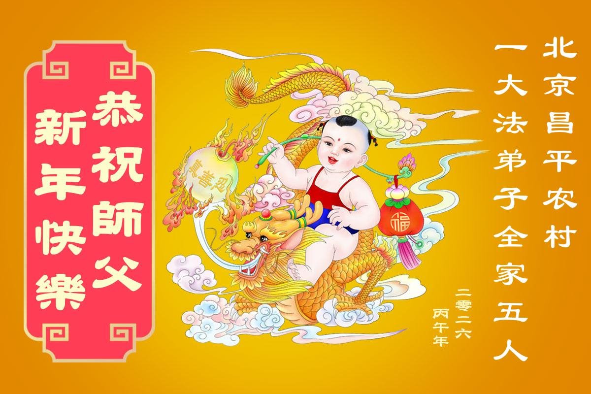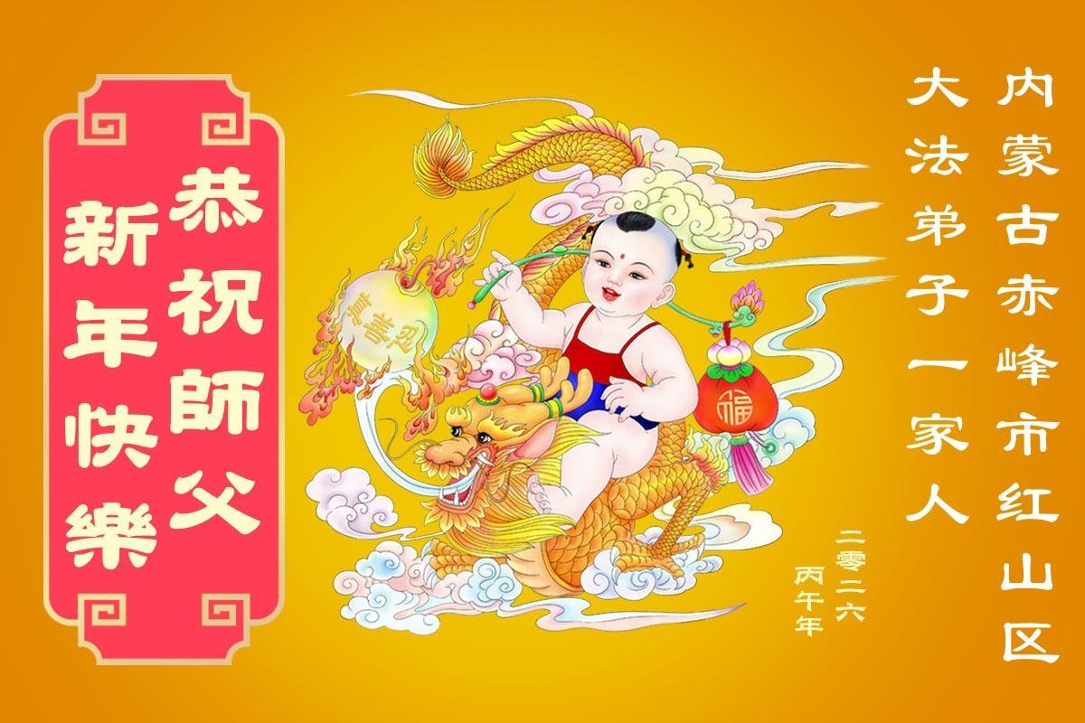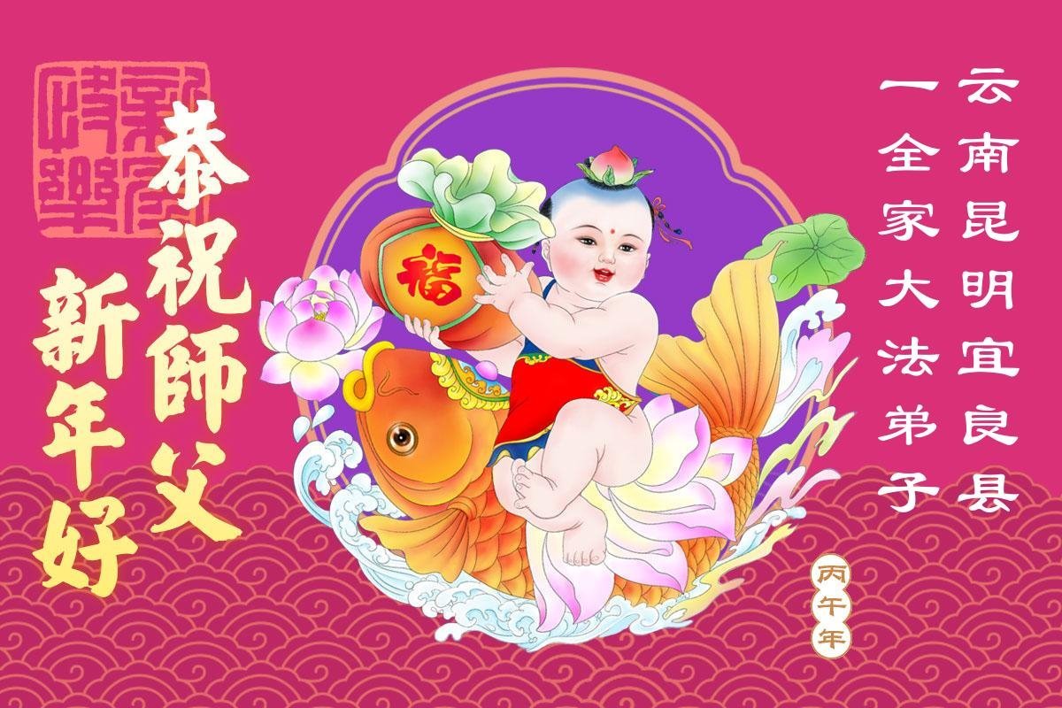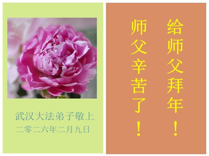 快过年了,我们全家给师父拜年,恭祝大法师父过年好!