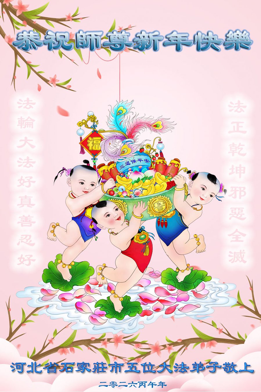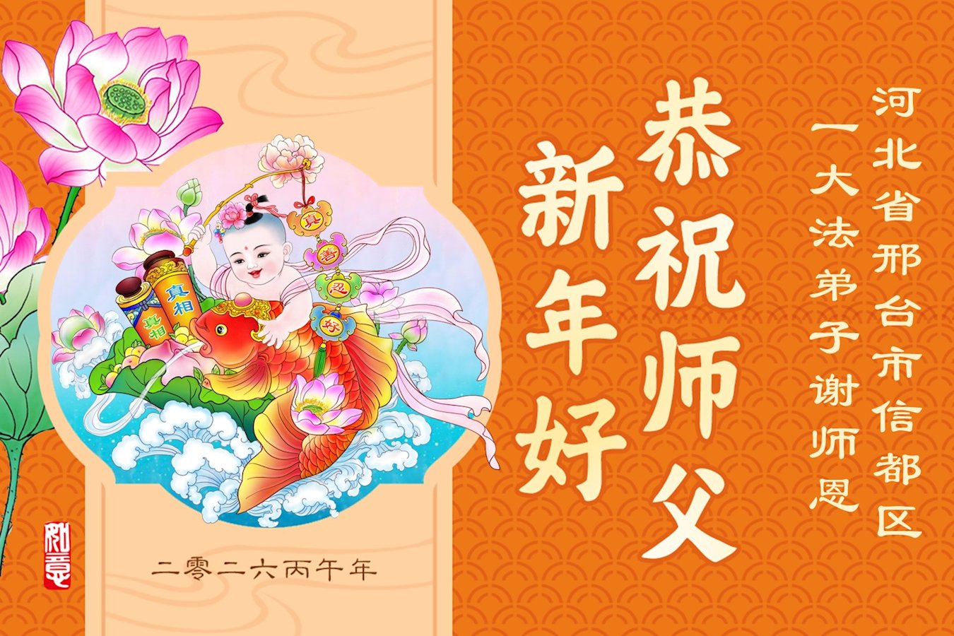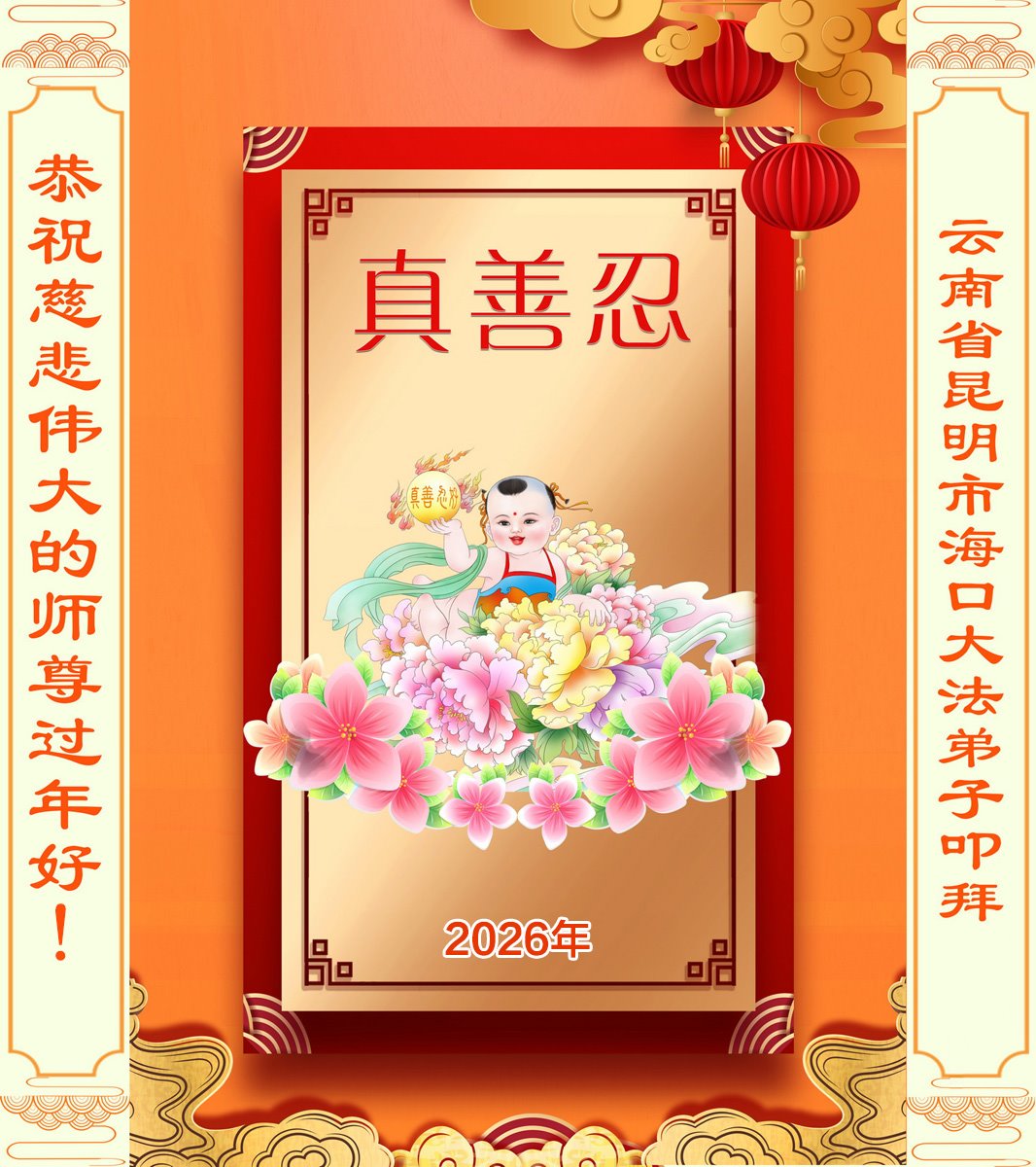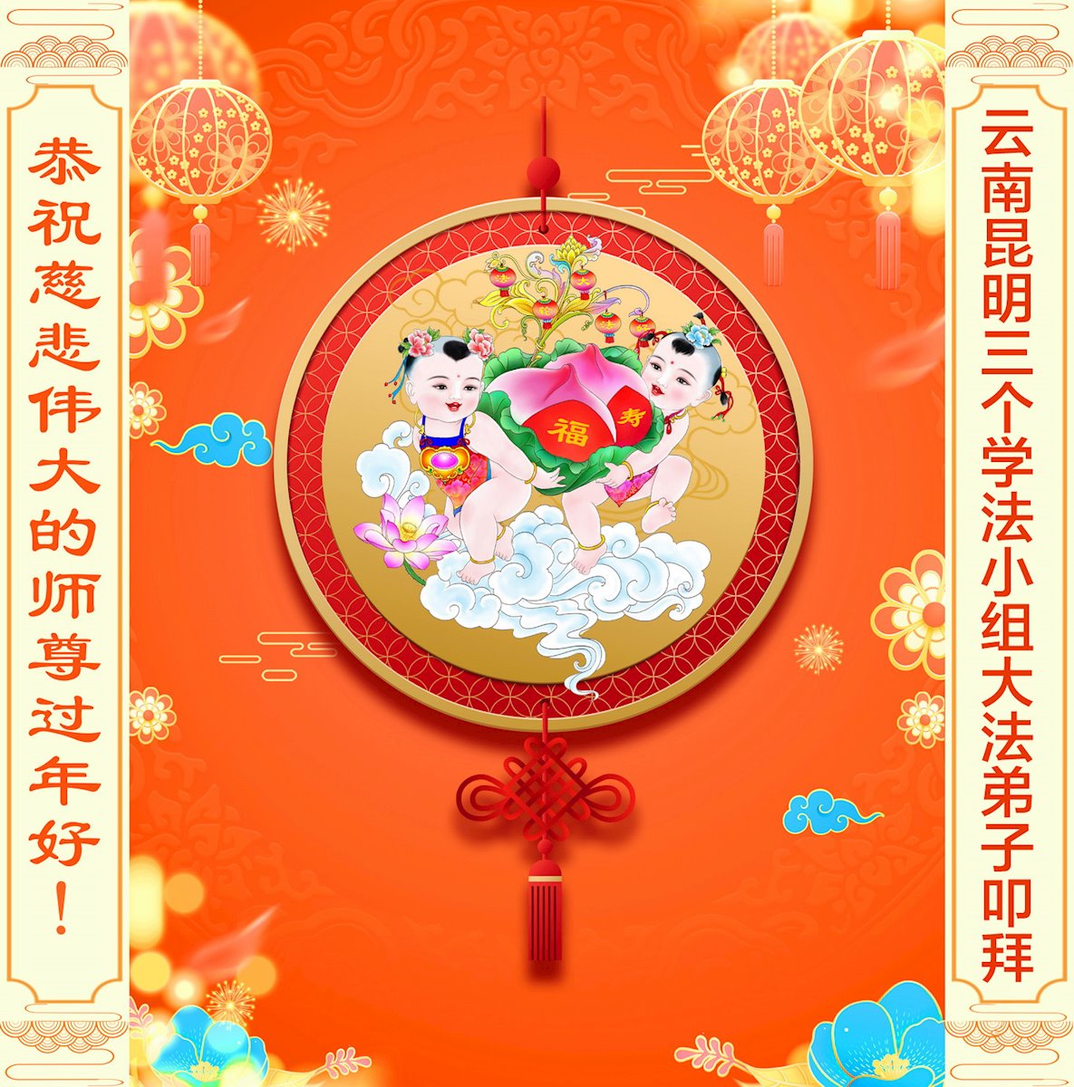 快过年了,我们全家给师父拜年,恭祝大法师父过年好!