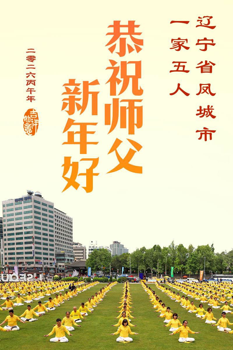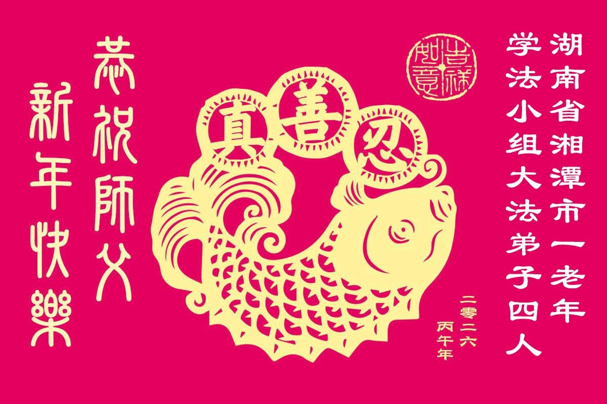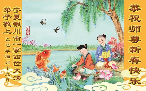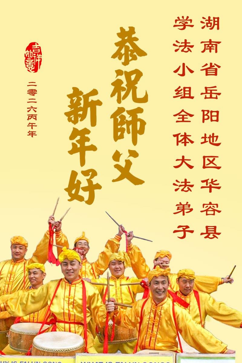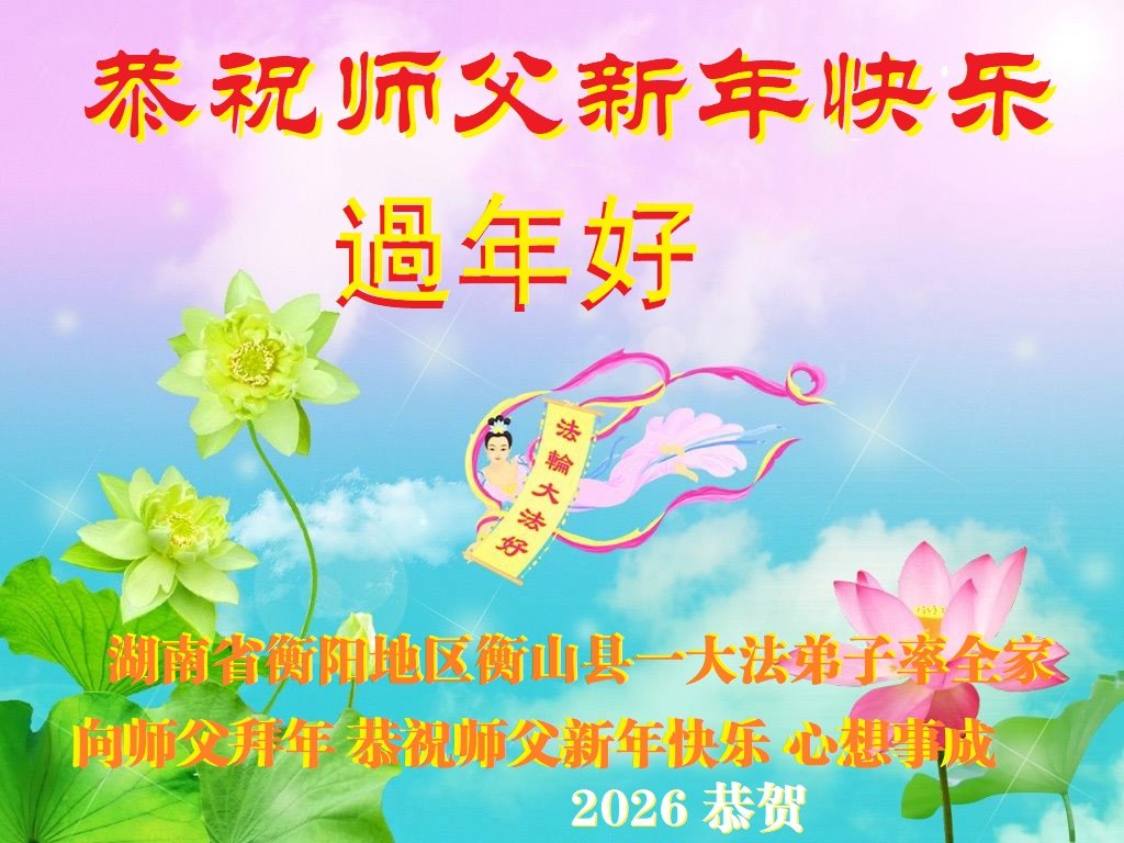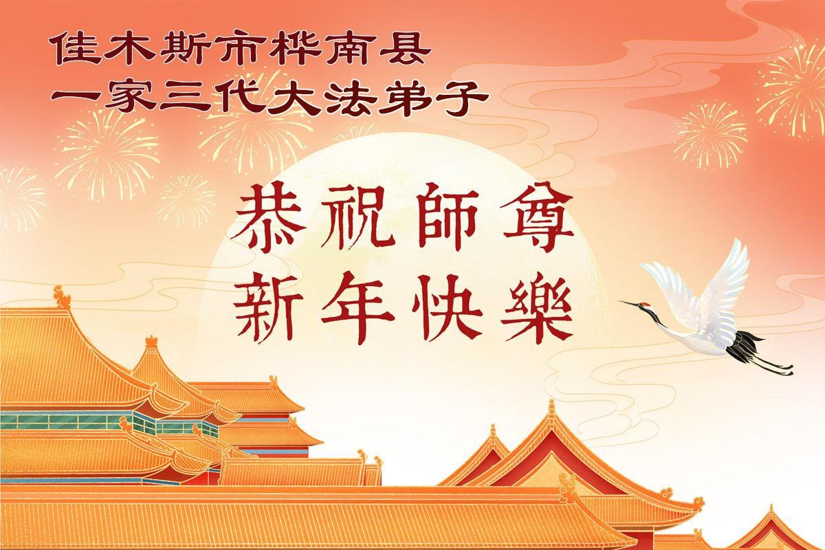 湖南岳阳君山区一大法弟子携全家恭祝师尊新年快乐!