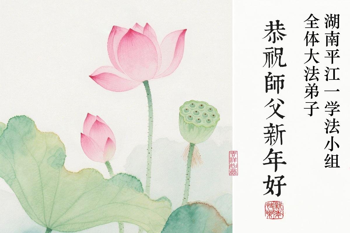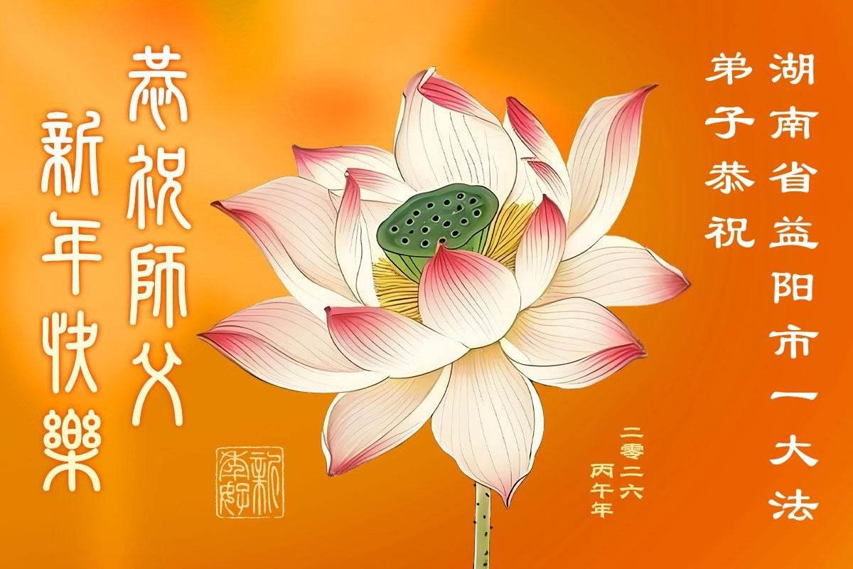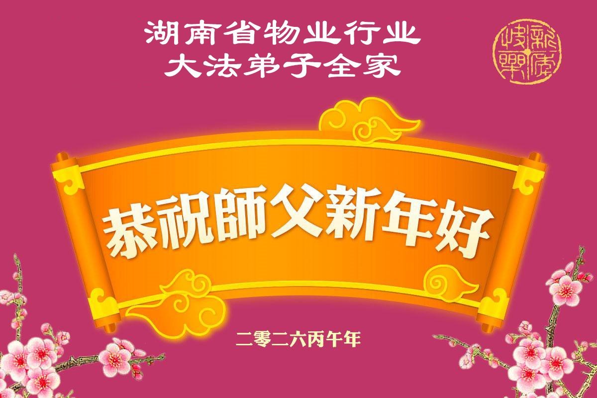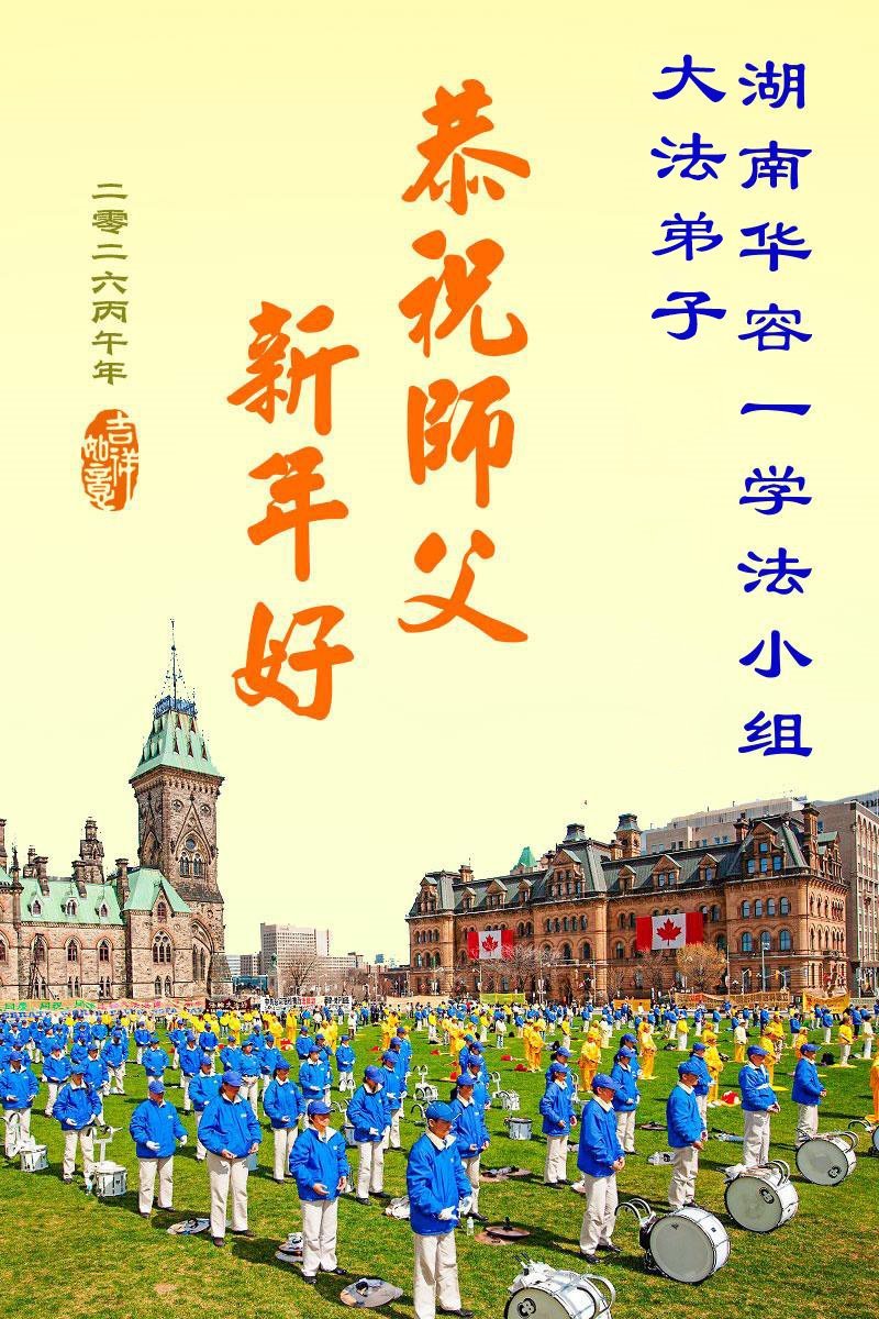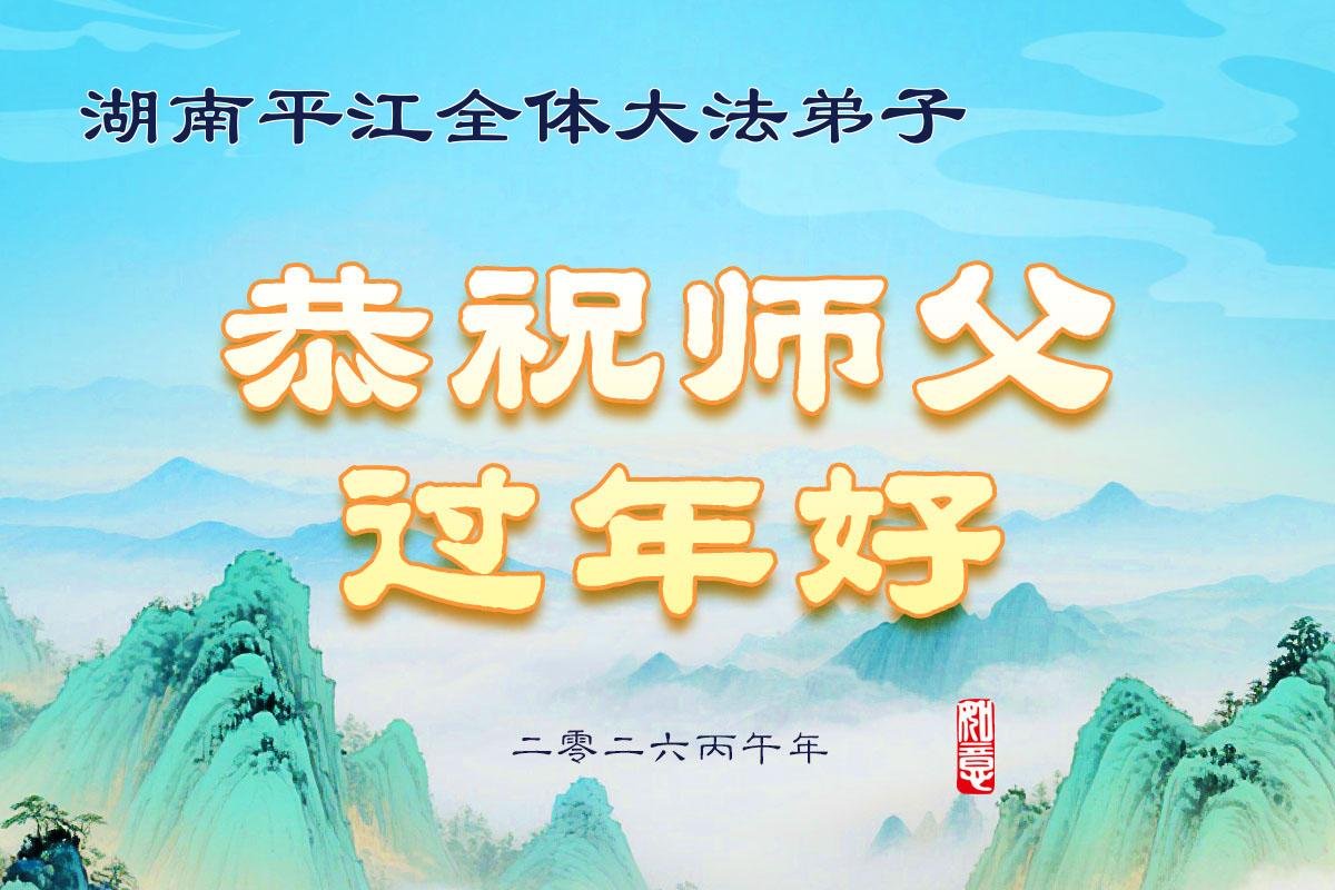 湖南岳阳君山区一大法弟子携全家恭祝师尊新年快乐!