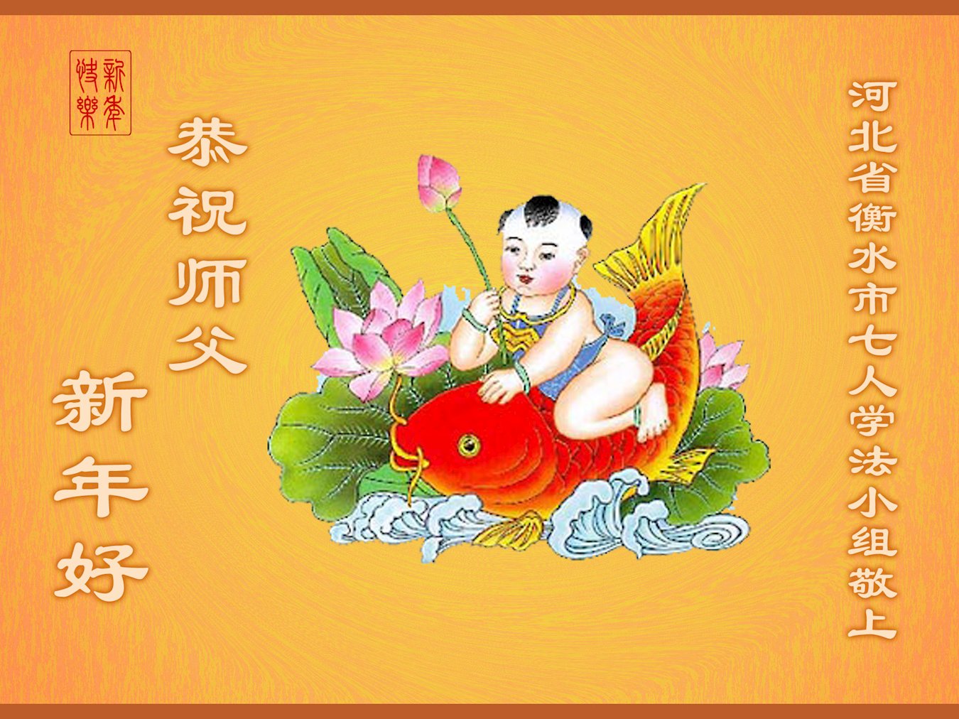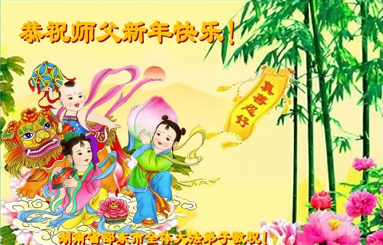 湖南岳阳君山区一得福报的小孩恭祝师父新年快乐!