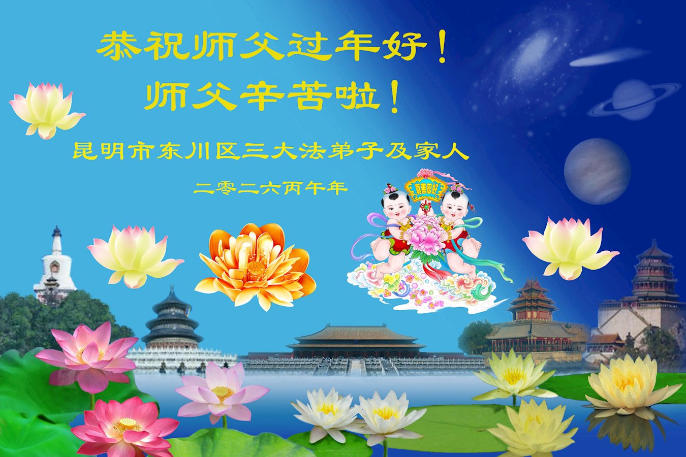 中国各地百姓敬祝李大师新年好