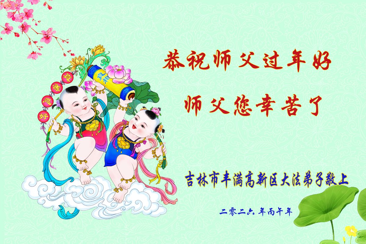 师父过年好!您辛苦啦!在新的一年里,我们要多学法,多炼功,多发正念,救众生,做好三件事、随师把家还!