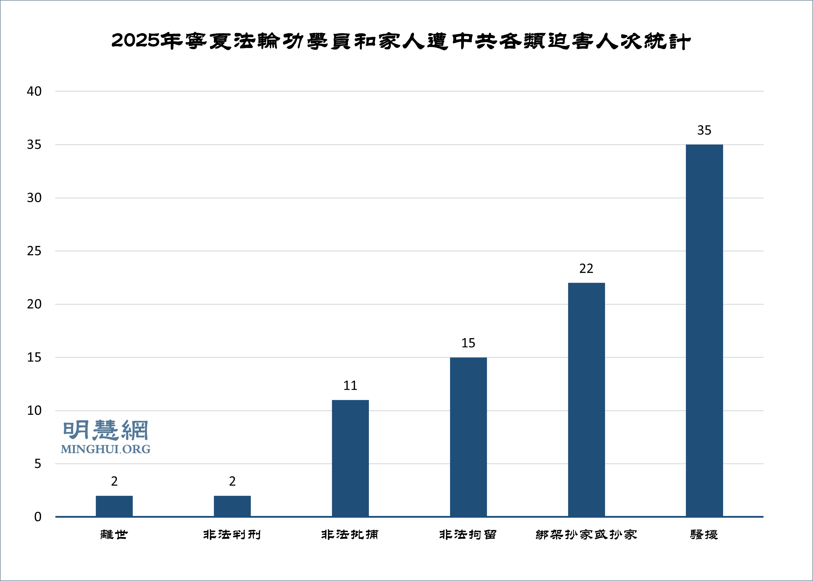 ![]() 图1:2025年宁夏法轮功学员和家人遭中共各类迫害人次统计 |