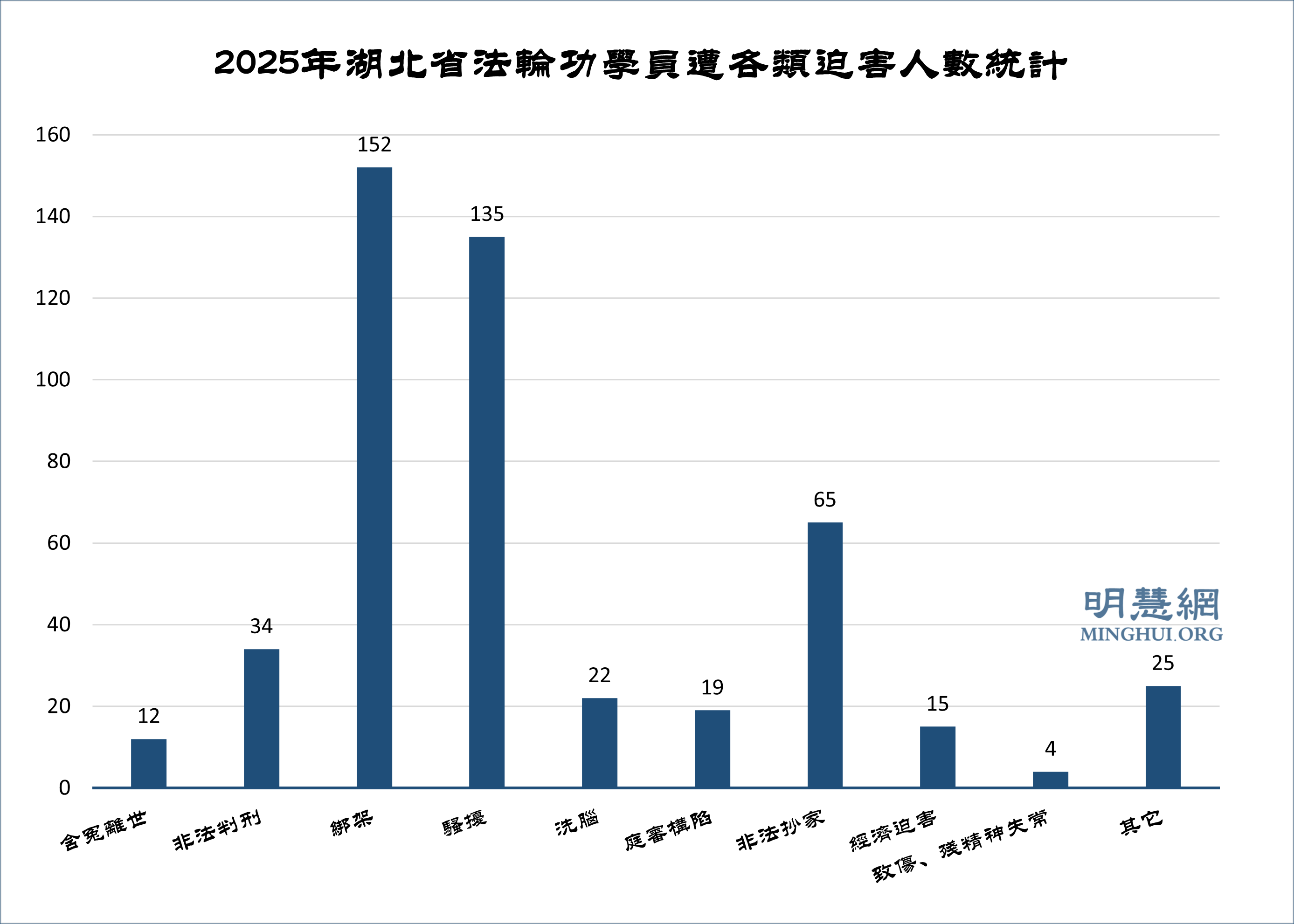 ![]() 图2:2025年湖北省法轮功学员遭各类迫害人数统计 |