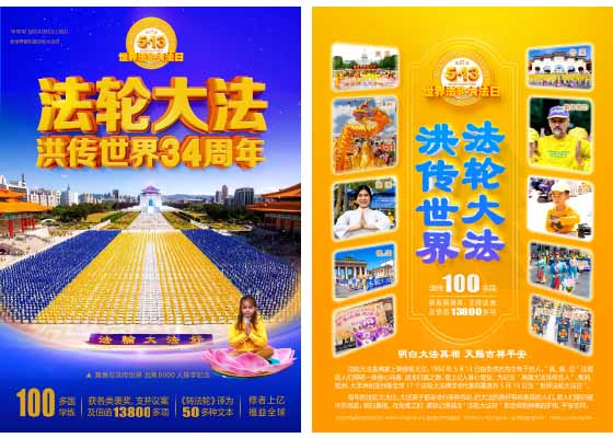 世界法轮大法日海报:法轮大法洪传世界34周年