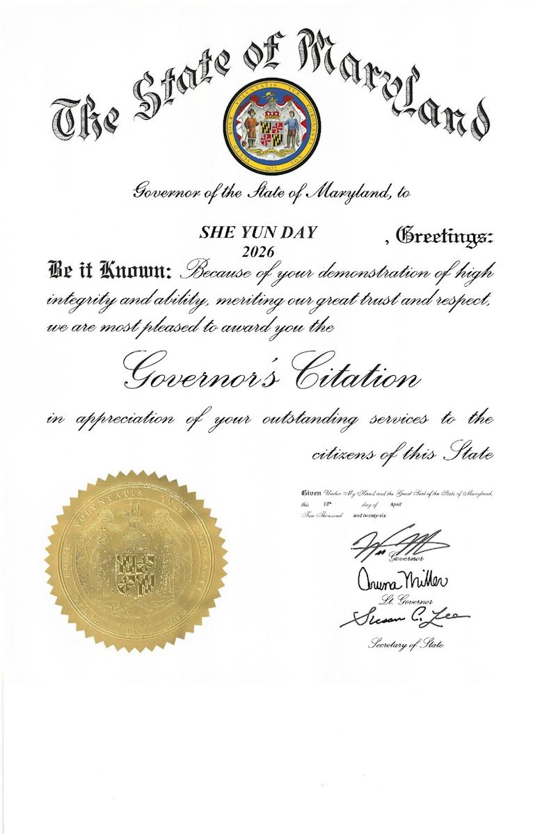 美国马里兰州州长恭贺二零二六年“神韵日”