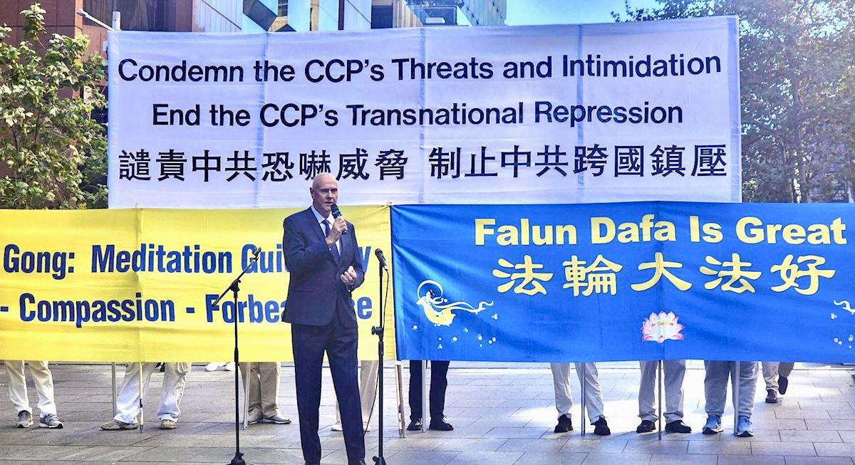 他提及年初中共驻悉尼及墨尔本领馆警告澳洲民众不要前往观看神韵艺术团在澳洲的演出。“当中共的外交代表试图告诉我在剧院里该看什么、不该看什么时,身为一个澳洲人,我感到极其愤慨。”他说,“中共——一个独裁统治的外国政权,来对我们澳洲人指手画脚,这是极其恶劣的。”