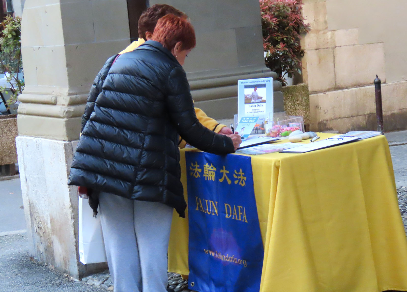 由于议会所在地,也是日内瓦的一个著名旅游点。因此游客很多。他们中许多人也在这里了解了法轮功的真相。并在征签表上签名,表示他们对法轮功反迫害的支持。