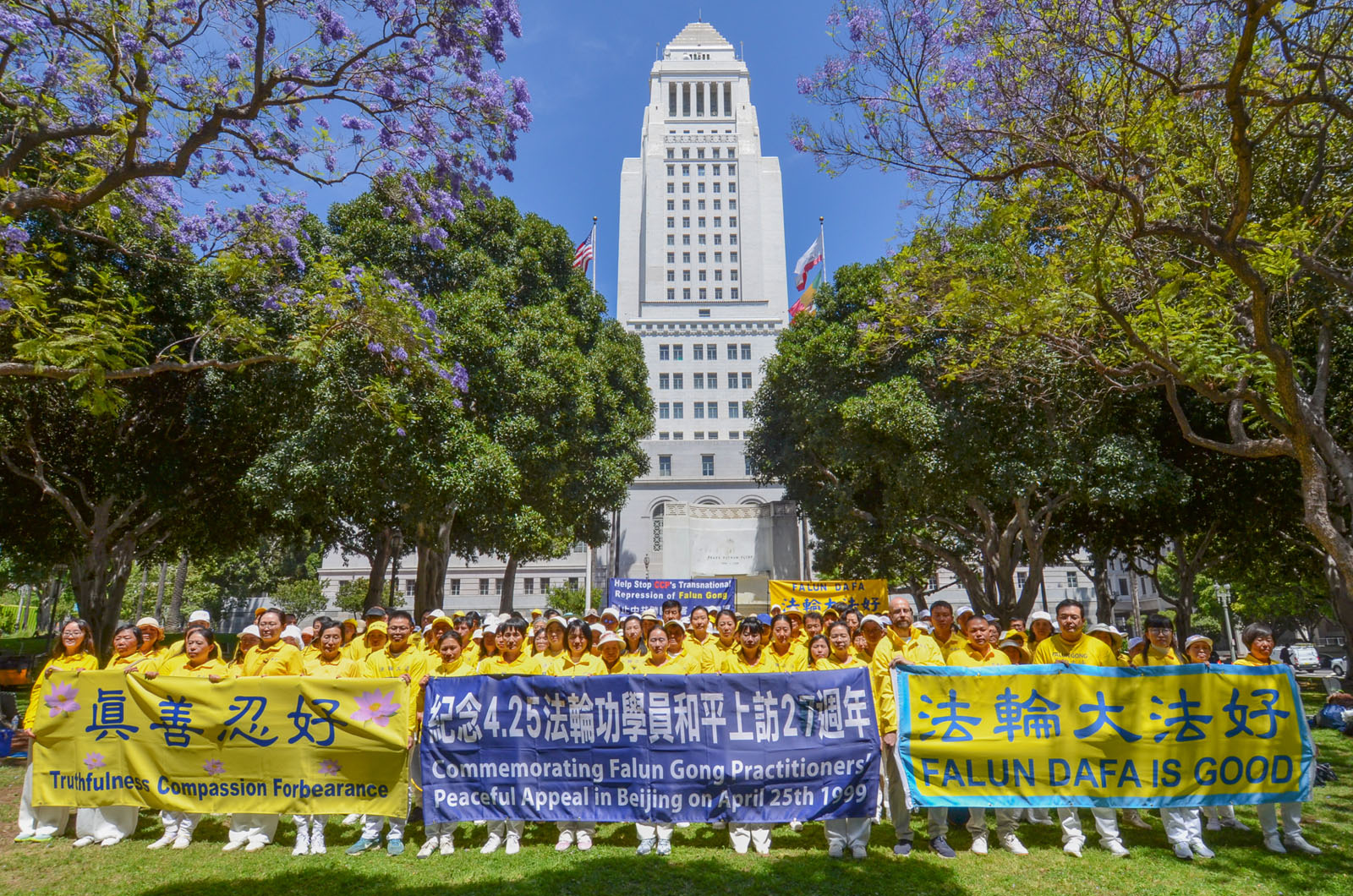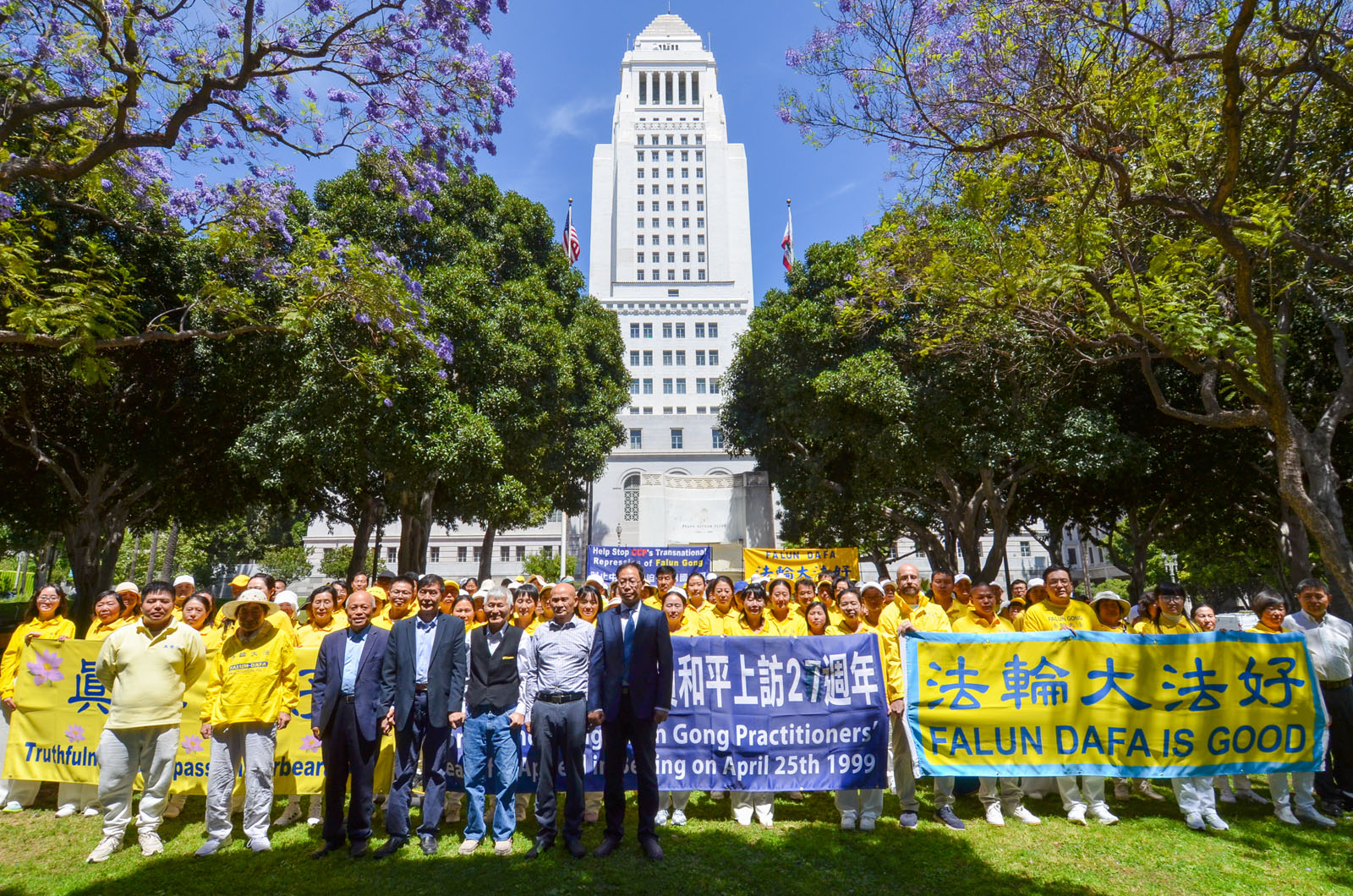 ![]() 图1~2:二零二六年四月二十三日,洛杉矶部分法轮功学员在洛杉矶市政府前集会,纪念“四·二五”和平上访27周年 (大纪元) |