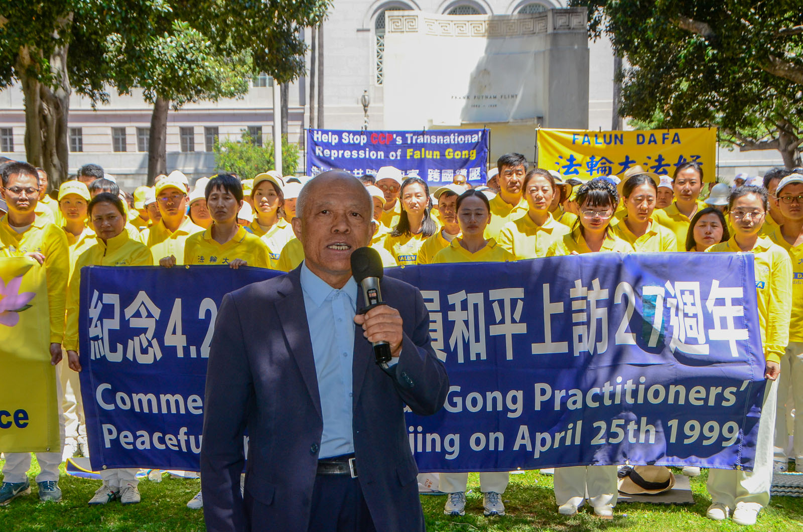 ![]() 图10:美西南法轮大法学会会长李有甫博士在洛杉矶法轮功纪念“四·二五”和平上访27周年集会上发言(大纪元) |