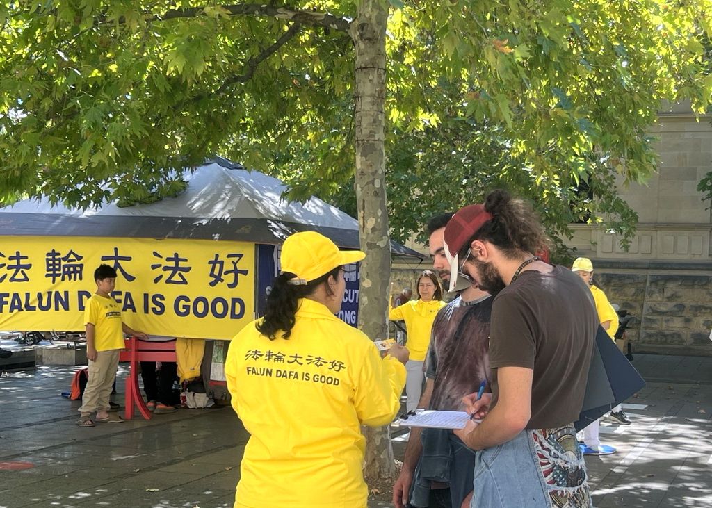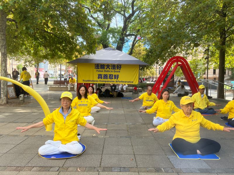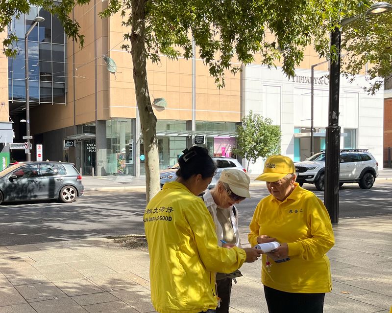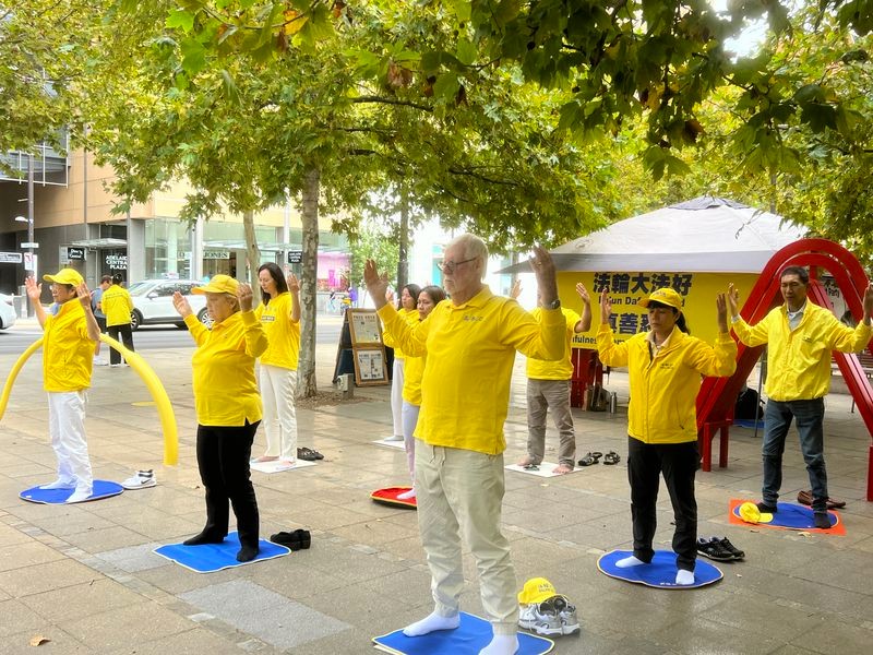 为此,南澳部分法轮功学员分别于二零二六年四月五日及十九日,在首府阿德雷德市中心北大街(North Tce)举行了集体炼功和讲真相活动,纪念“四·二五”法轮功学员和平上访27周年,期望法轮功学员在中国能行驶信仰和人权自由的权力。