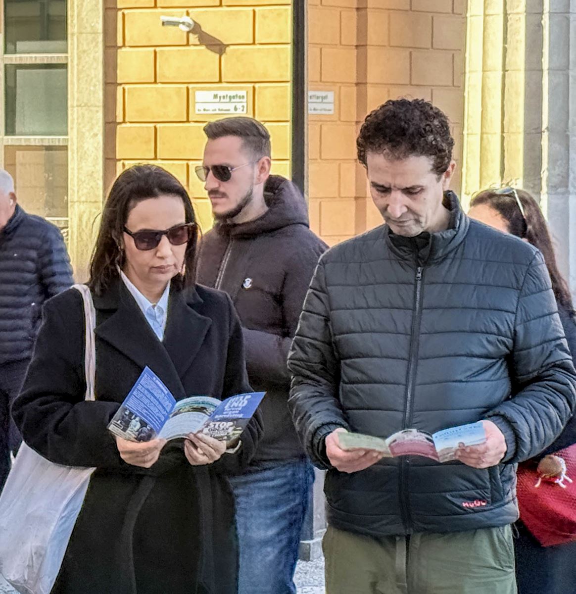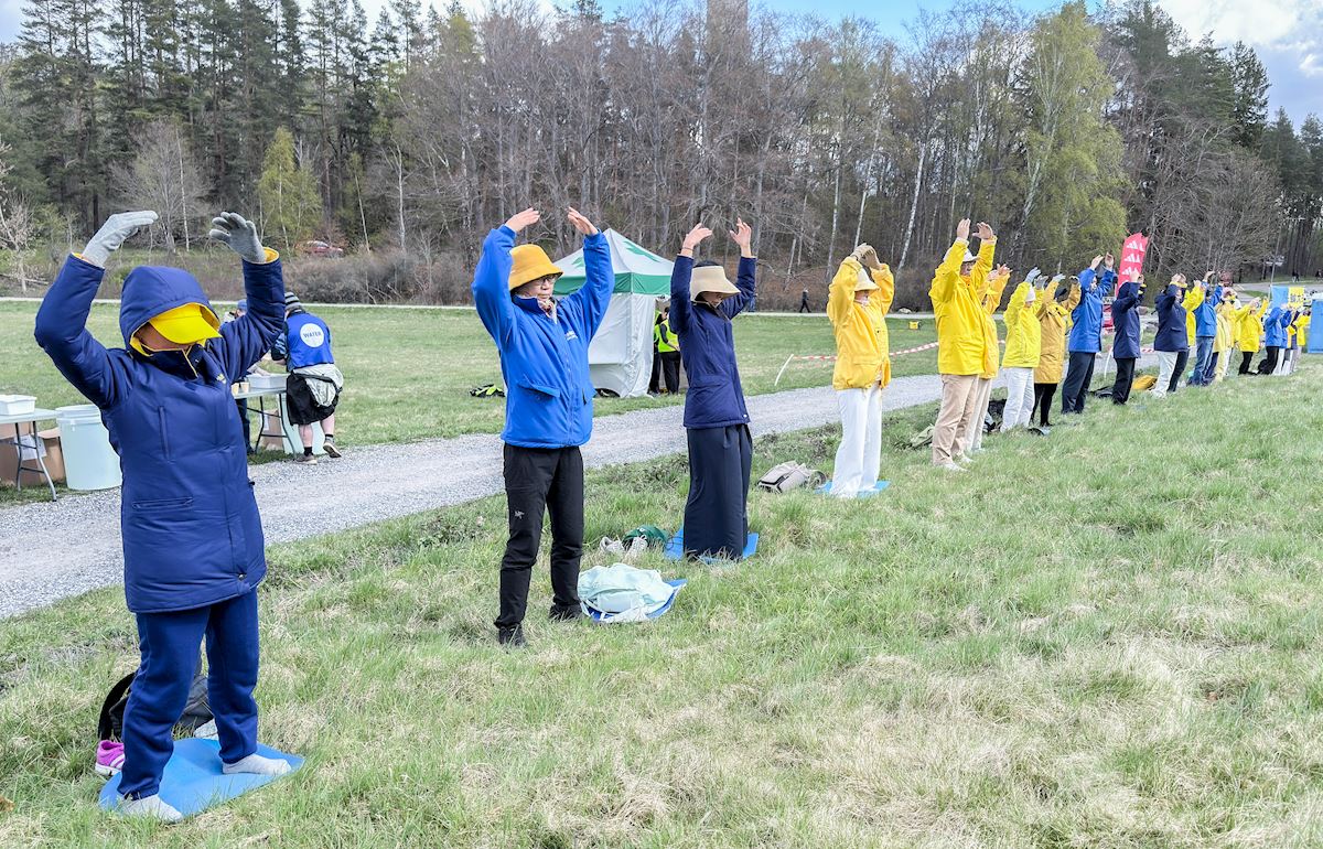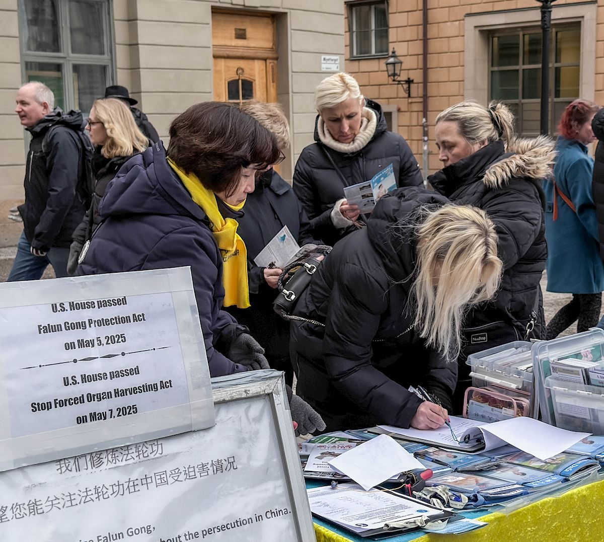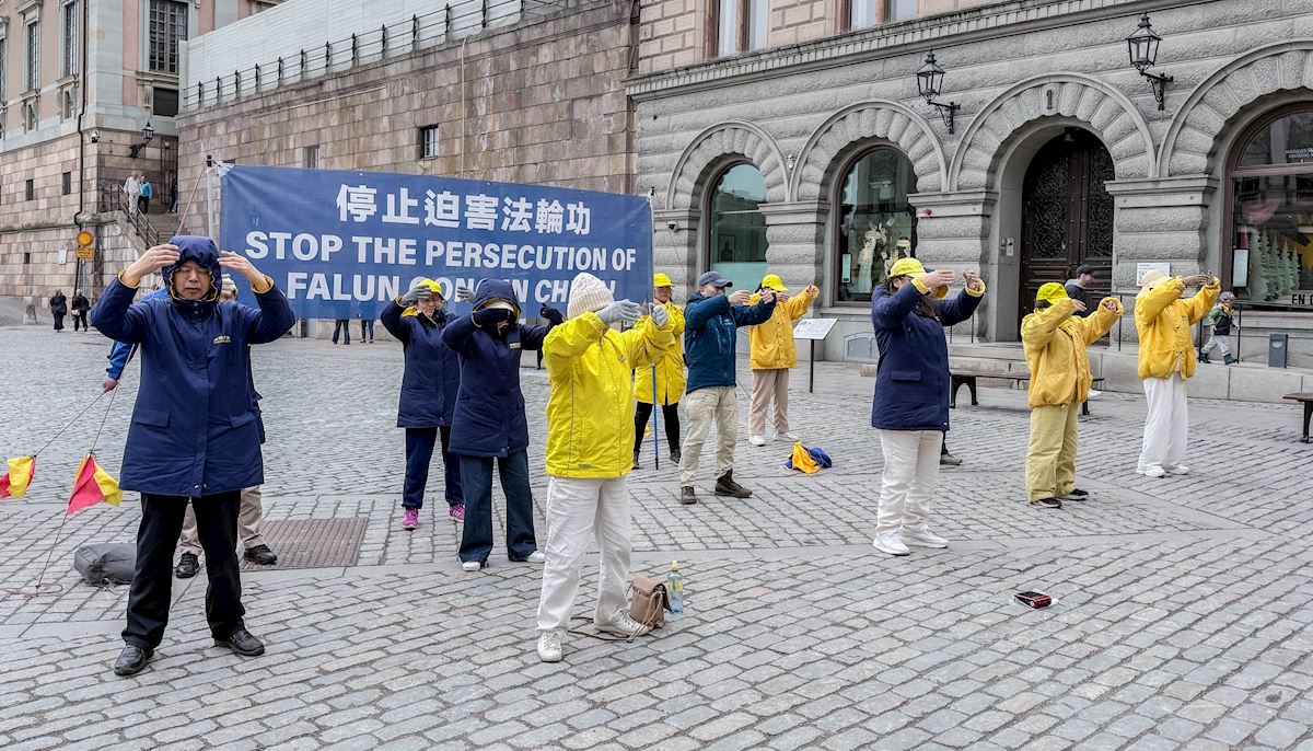 当天下午一点,法轮功学员又来到斯德哥尔摩市中心国会大厦旁的钱币广场以集体炼功,征集签名等形式,向当地民众及游客介绍法轮功、讲述27年前的“四·二五”,中国法轮功学员实行宪法赋予公民信仰自由的权力、到国家信访办向政府反映情况,却换来了27年的血腥迫害,甚至被活摘器官的事实真相,