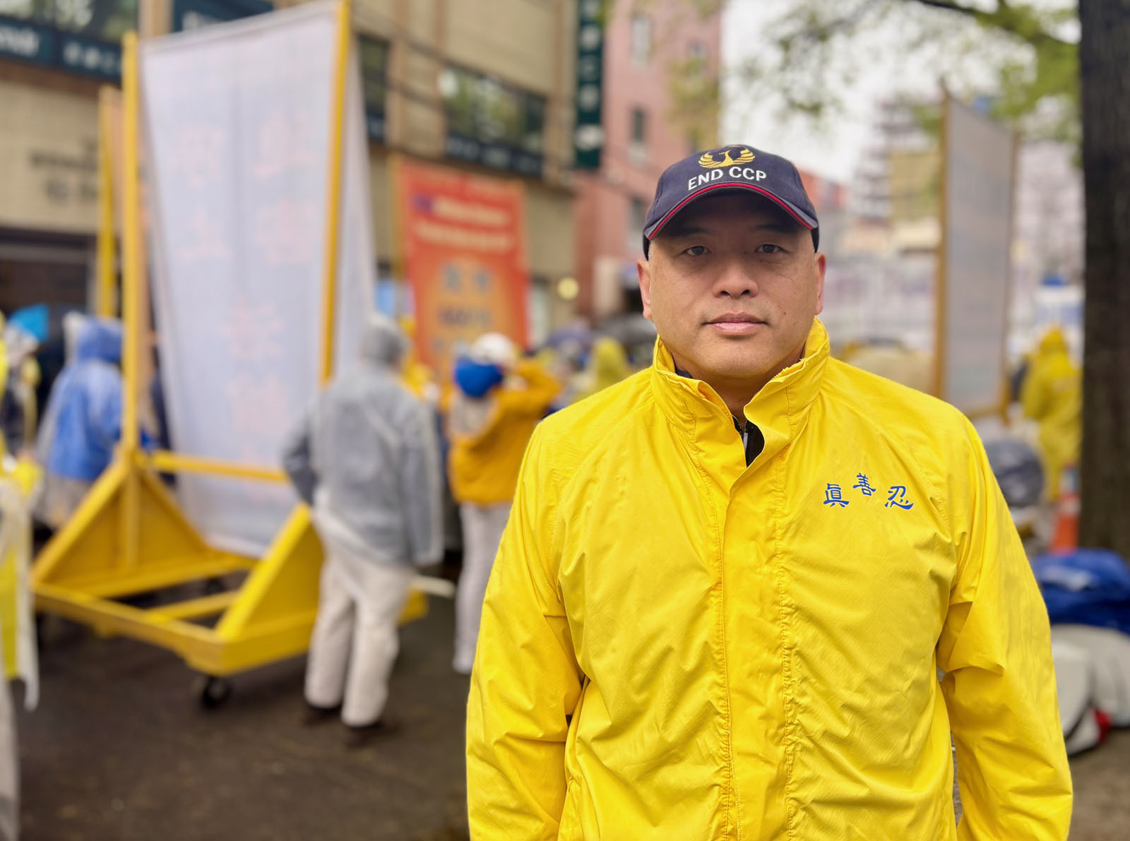 图1:2026年4月25日,法轮功学员林晓旭博士参加了当天的游行活动。林晓旭是美国一位病毒学专家,当年在美国经历了“四‧二五”的发生。